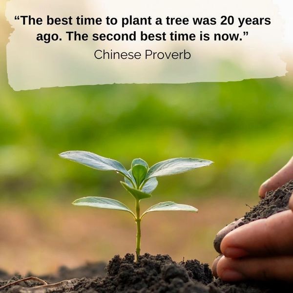 We use the Chinese tree proverb to highlight the importance of starting good financial practices early. Just like planting a tree, proper bookkeeping and planning take time to grow strong results. Even if mistakes were made before, a business can start now and build a stable financial future.